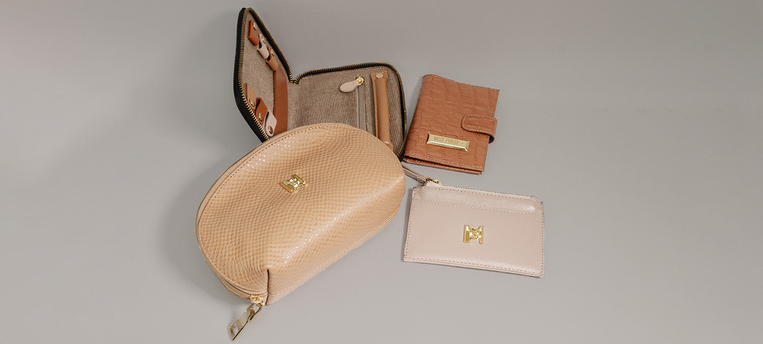 NECESSAIRE E BOLSA LUA EM COURO LEGÍTIMO PRETA