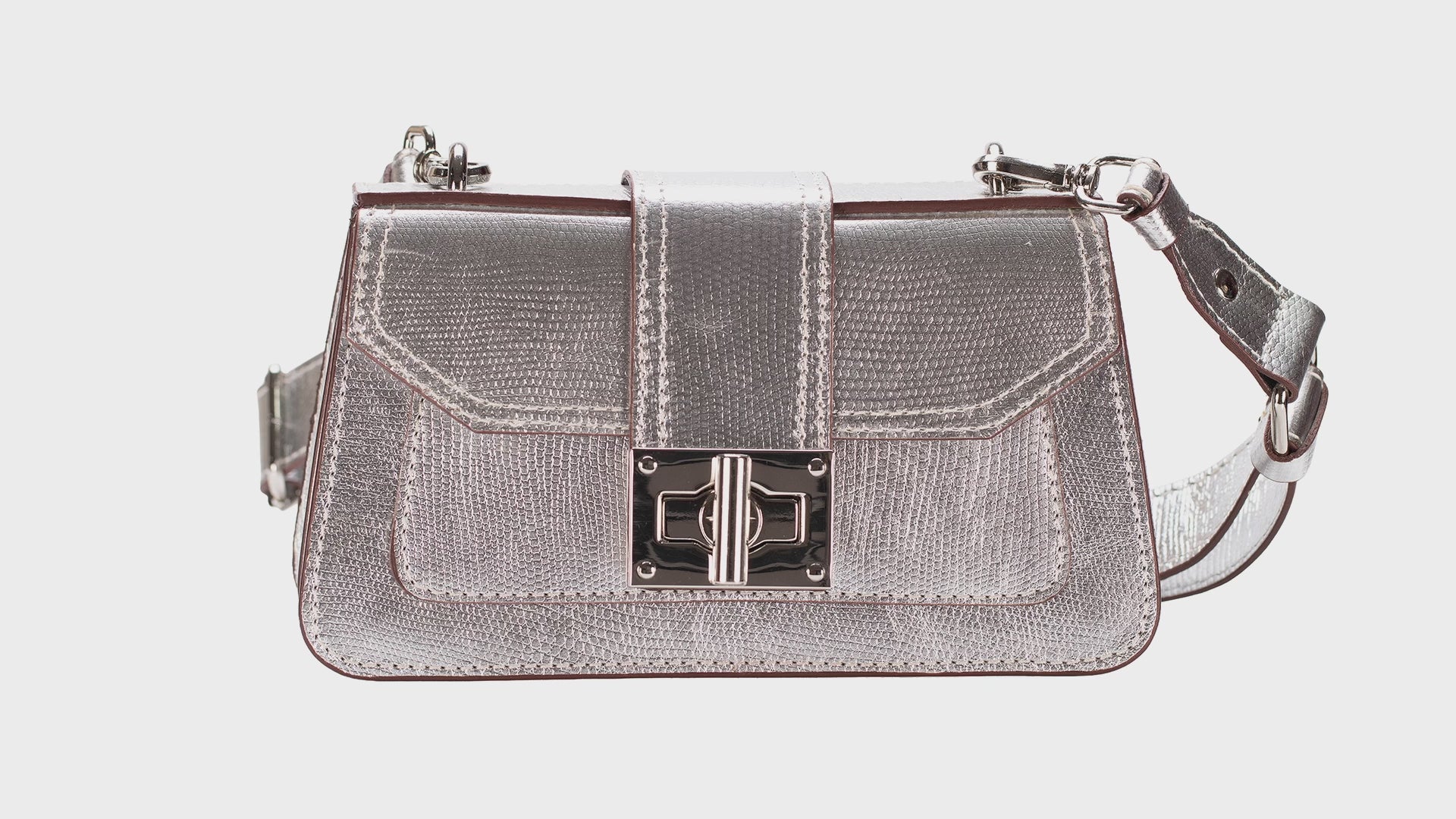 Bolsa Milão – Couro Legítimo Prata Metalizado
